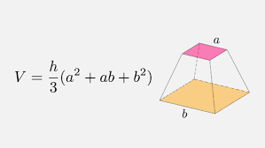 May 11, 2013 · the formula for the volume of a conic or pyramidal frustrum with bases a, b, and height h is v = (a + b + √(ab))h/3. To find the frustum of a cone first we should un. See full list on calculushowto.com Alternatively, subtract the volume (or surface area) of the tip from that of the original pyramid. The egyptians, of course, used different variables.